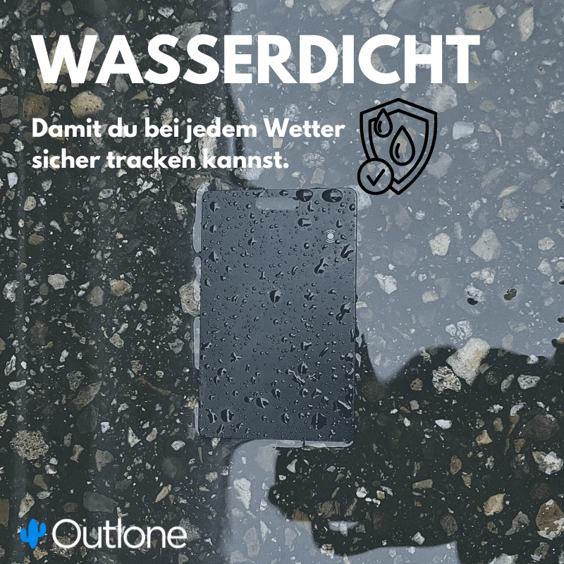 Der Outlone Tracker ist wasserdicht und robust gebaut, um den Anforderungen des Alltags standzuhalten. Er bleibt zuverlässig, egal bei welchem Wetter.